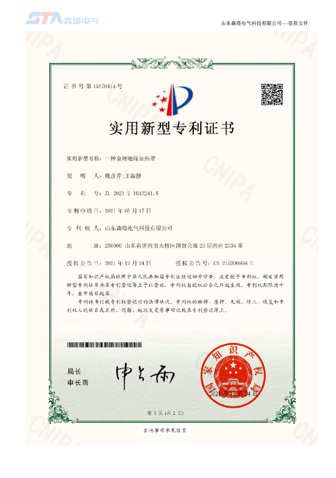 山東森塔電氣科技有限公司成立于2017年3月,位于美麗的泉城濟南,交通十分便利。公司主要從事電熱產品的開發、研究與制造、電伴熱和電加熱工程的咨詢和設計、產品的生產制造及安裝。是中國電伴熱生產廠商之一,以優異的生產技術站立于電伴熱行業市場,產品通過了“國家防爆電氣產品質量監督檢驗中心”的防爆檢驗,取得了防爆合格證。產品主要應用于鋼鐵、新能源、石化、建材、鐵路建設、環保、電力等領域。